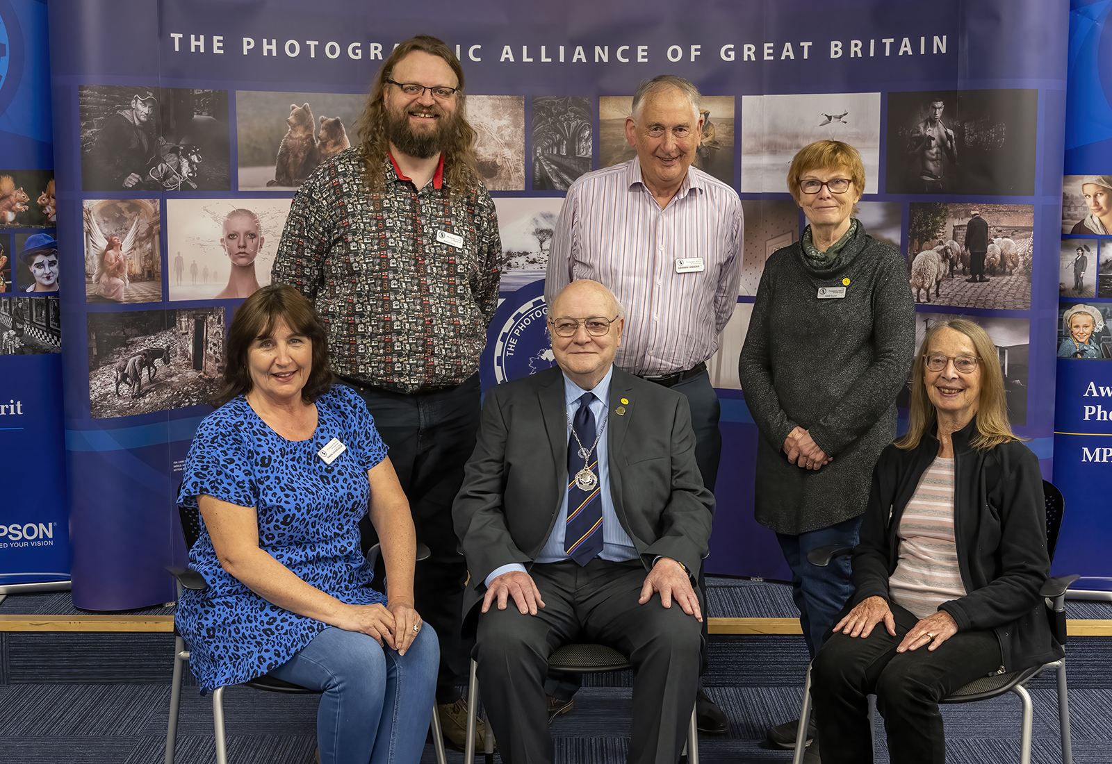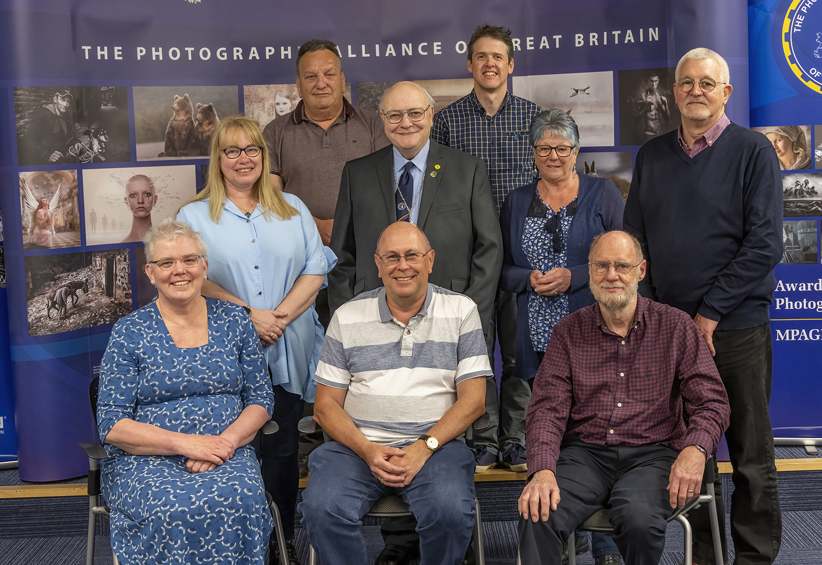 Front row l/r; Gwen Charnock FRPS, MFIAP, APAGB. Roger Parry (PAGB President), ARPS, MPAGB, HonPAGB, EFIAP. Sue Moore FRPS, MPAGB.