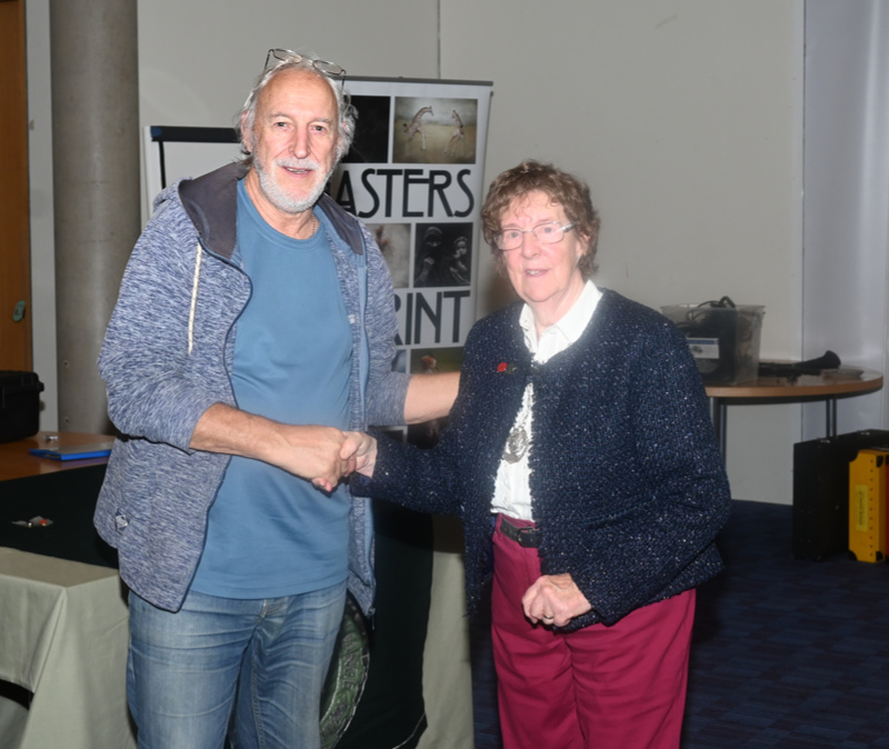 Colin Bradshaw MPAGB, EFIAP, EPSA, BPE5* from the Photographic Imaging Co-operative, receiving his badge from Daphne.