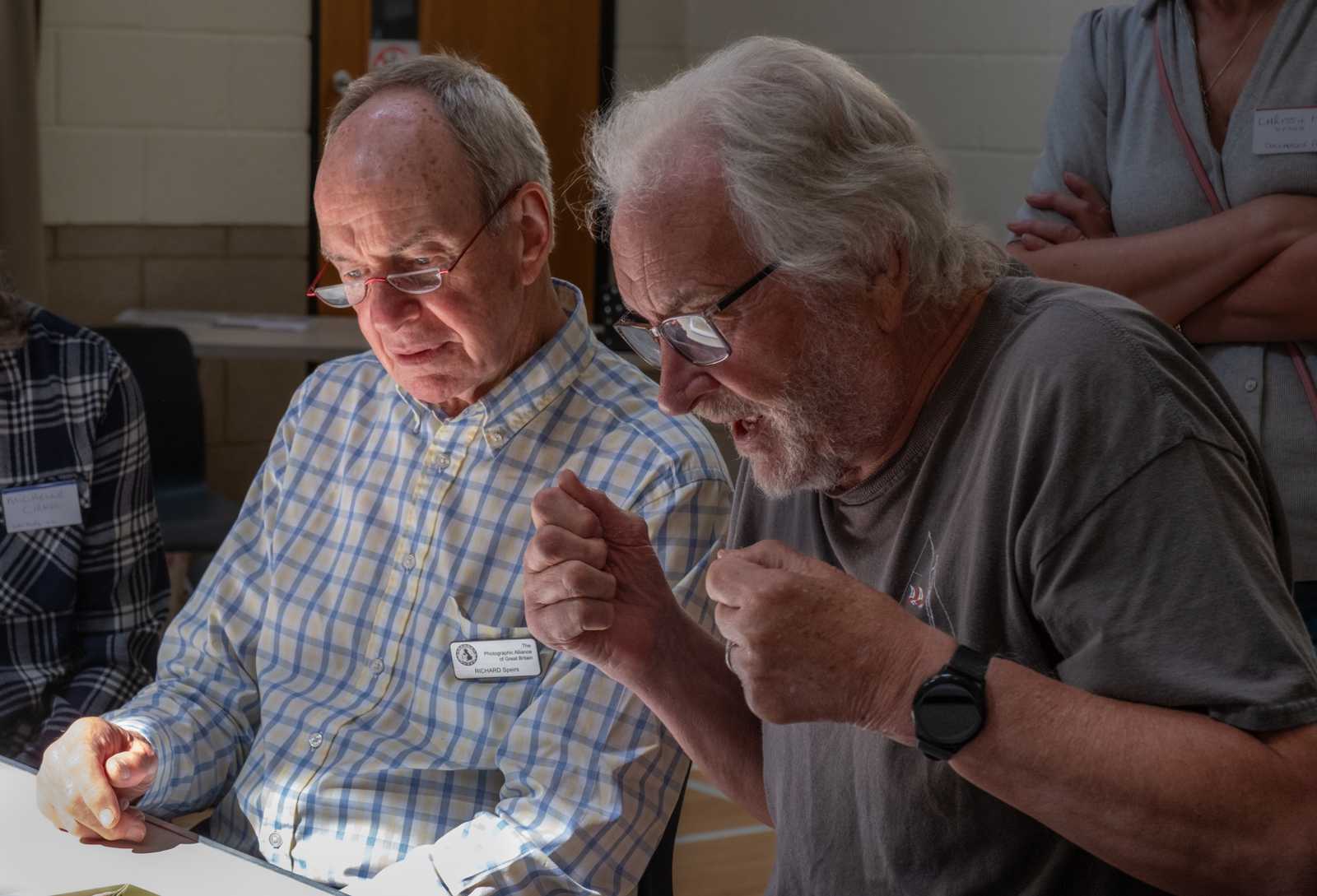 Vic Hainsworth, Richard Spears, Anne Greiner and Rod Wheelans & Richard Spears appraising a print